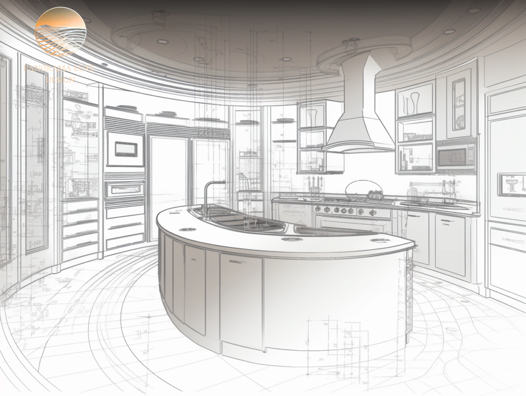 Despite its compact footprint, the space flows effortlessly. The island’s curvature promotes movement, while the layout keeps essential appliances within intuitive reach. Dual sinks, integrated oven systems, and a broad prep area ensure performance without compromising form.